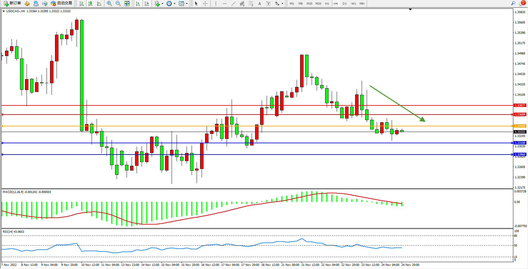 交易策略:1.33450下方看跌,目标1.33100、1.32860