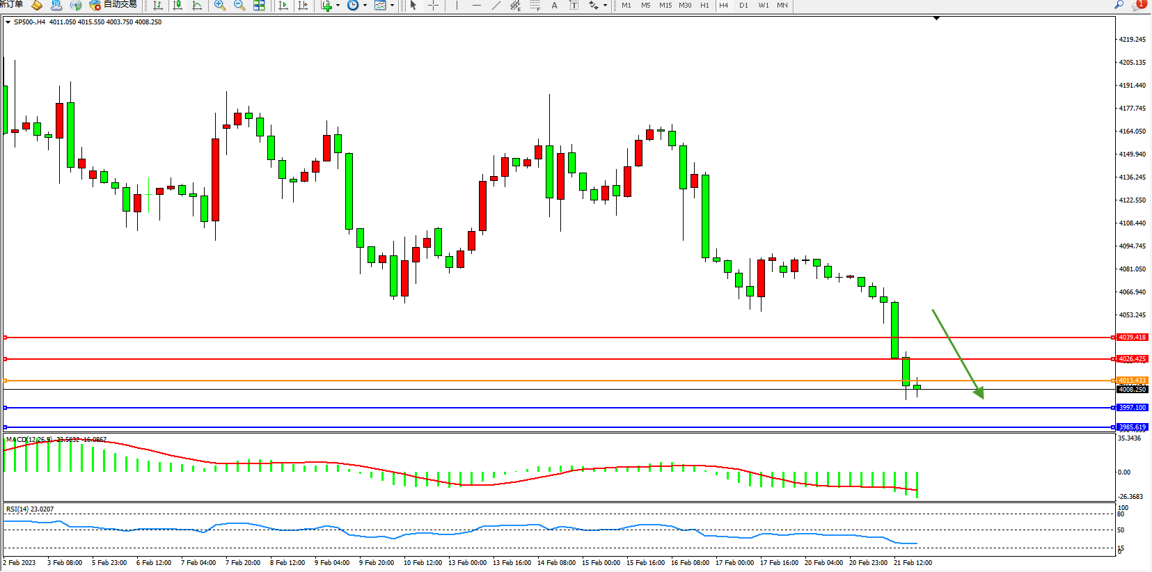 标普SP500——4小时K线图显示: