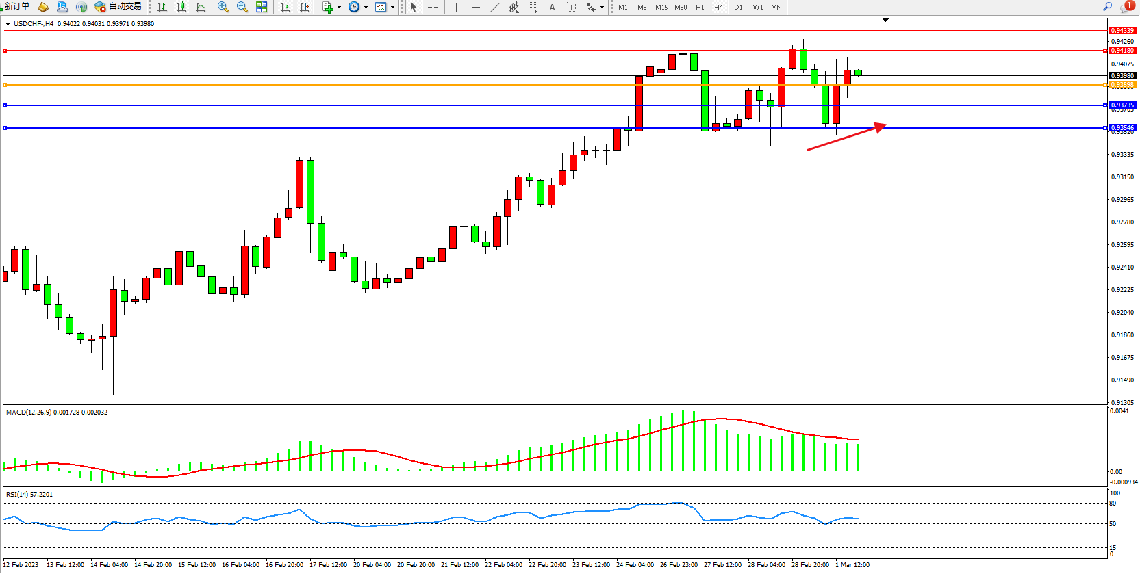 美元兑瑞郎维持0.93980附近震荡,美元指数回吐2月份涨势。但居高不下的通胀压力将迫使美联储进一步加息,进而限制了瑞郎反弹空间。