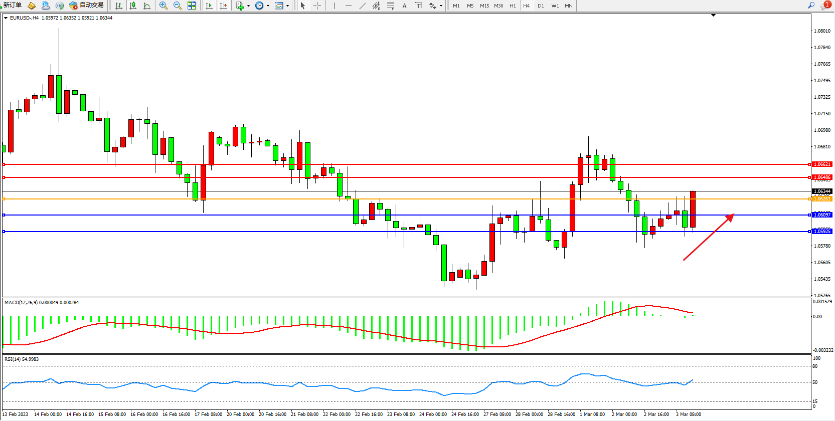 欧元兑美元维持1.06344附近震荡,2欧洲央行月份商业活动的显著扩张有助于缓解对欧元区衰退的担忧。但人们对需求的潜在强度仍存在疑虑,特别是2月份的部分增长似乎是由临时因素推动的,比如反常的温暖天气和供应商交货时间的显著改善。