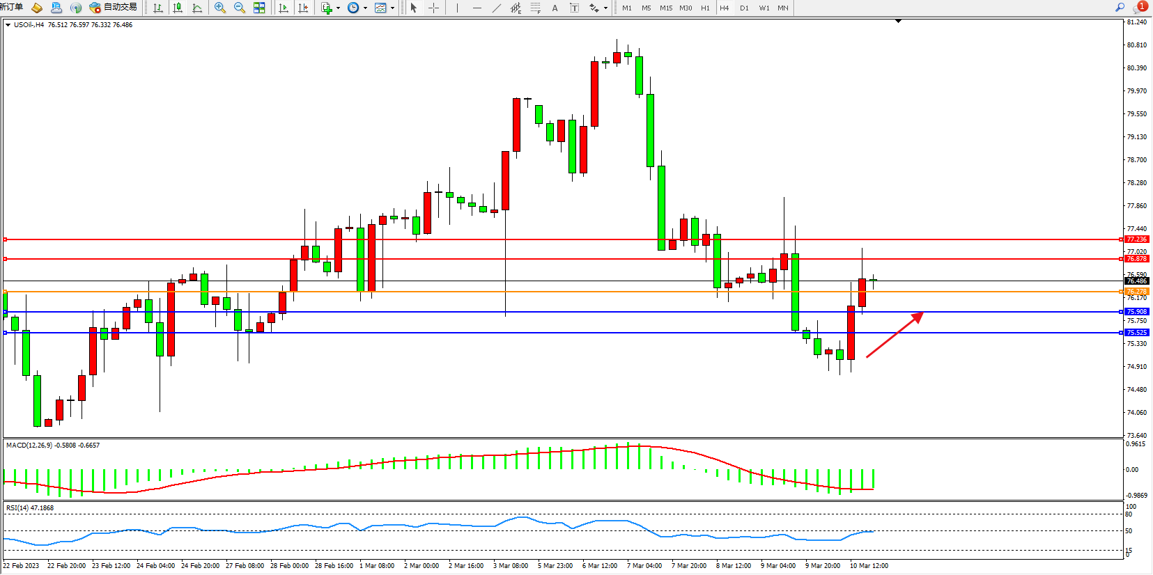 阻力位:76.878  77.236