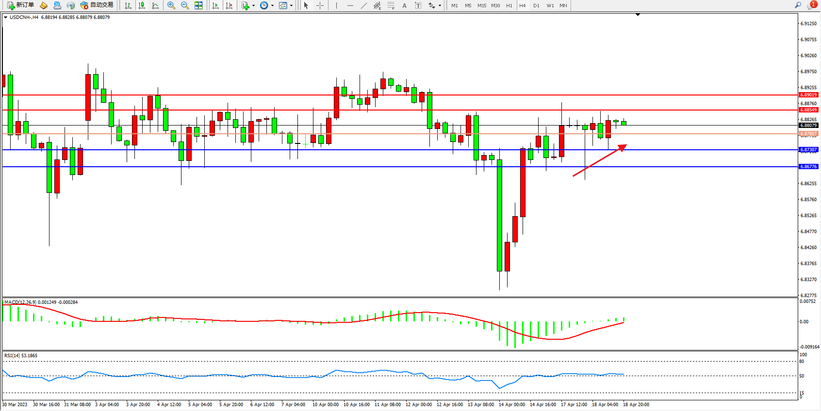 交易策略:6.87807上方看涨,目标6.88549 6.89019