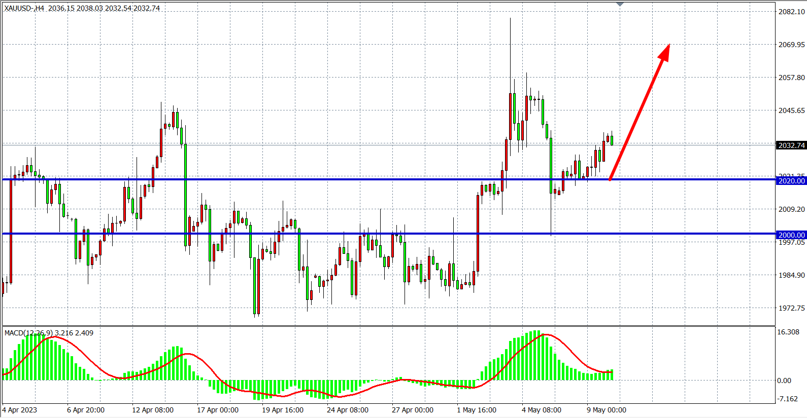 周二(5月9日)因投资者在经济不确定之际寻求避险,以及债务违约问题依旧得不到解决,市场在等待美国CPI数据公布之际,现货黄金涨至2030之上,最终收涨0.67%。展望后市,将重点关注公布的美国4月CPI数据,此数据的表现或直接影响美联储6月的政策倾向,从而对金融市场产生巨大的冲击,黄金是再次刷新纪录高点或阶段性见顶,即将见晓。