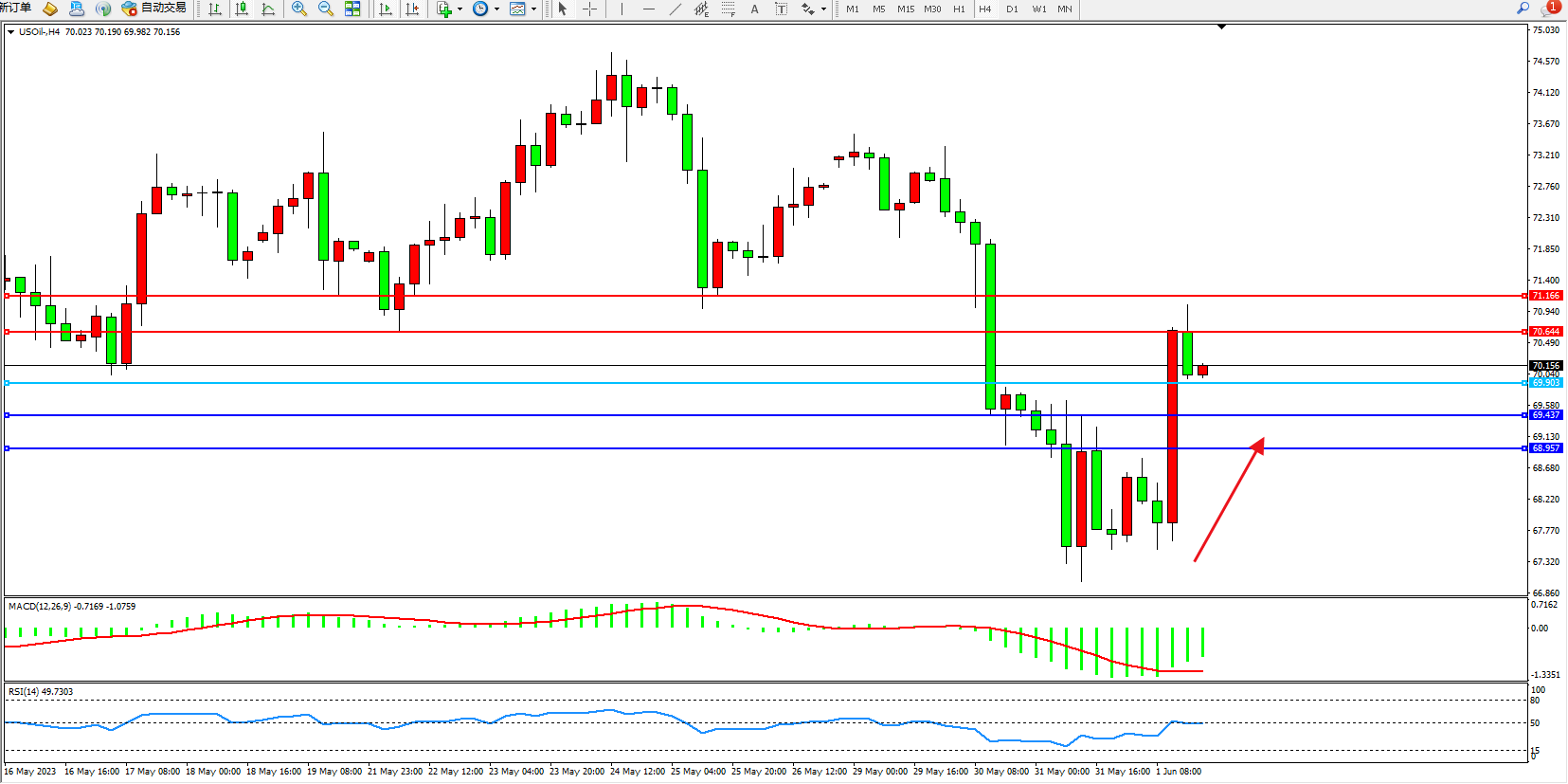 原油USOil——4小时K线图显示: