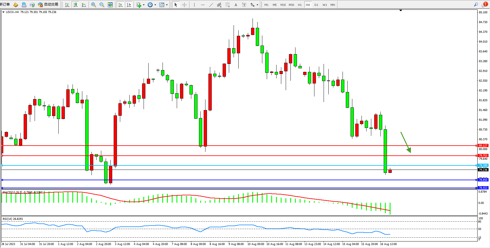 交易策略:79.390下方看跌,目标78.850 78.553