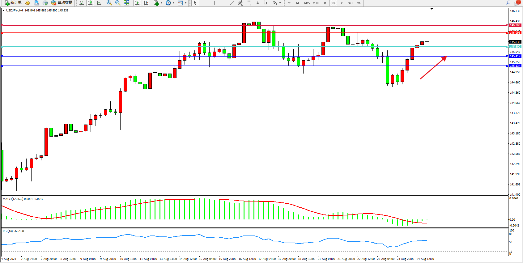 阻力位:146.093 146.308