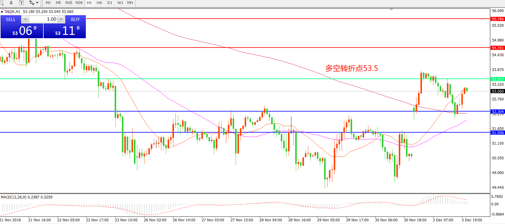 交易策略:在53.5之上看涨,目标54.70 55.80