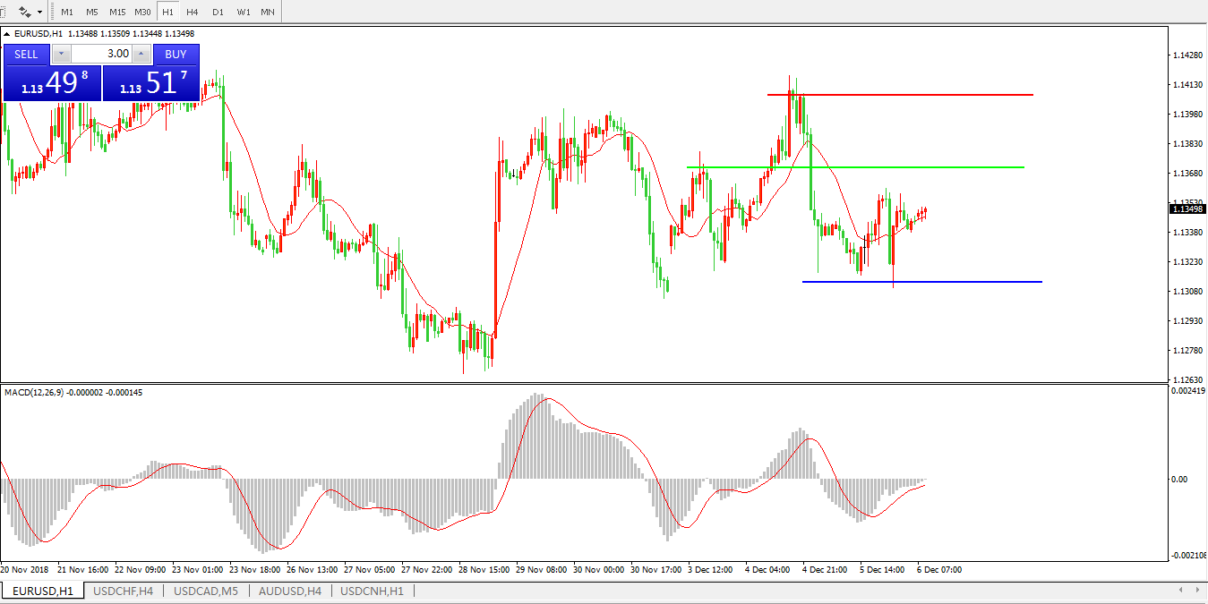 欧元兑美元EURUSD  1小时图: