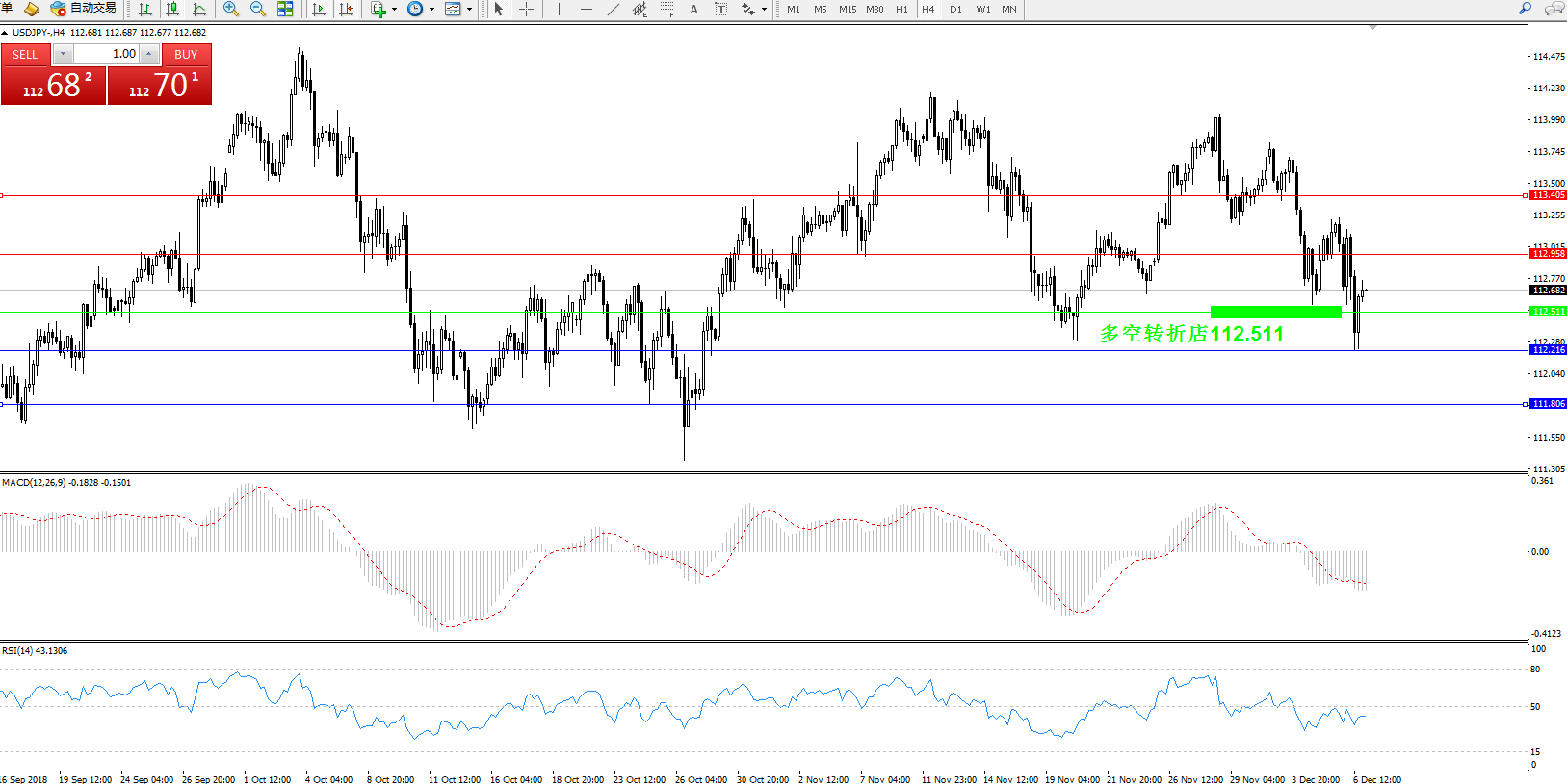 交易策略:112.511上方看涨,目标112.958113.405