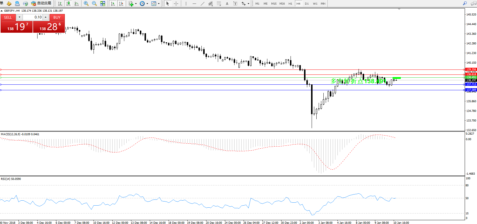交易策略:138.491下方看跌,目标137.713137.089
