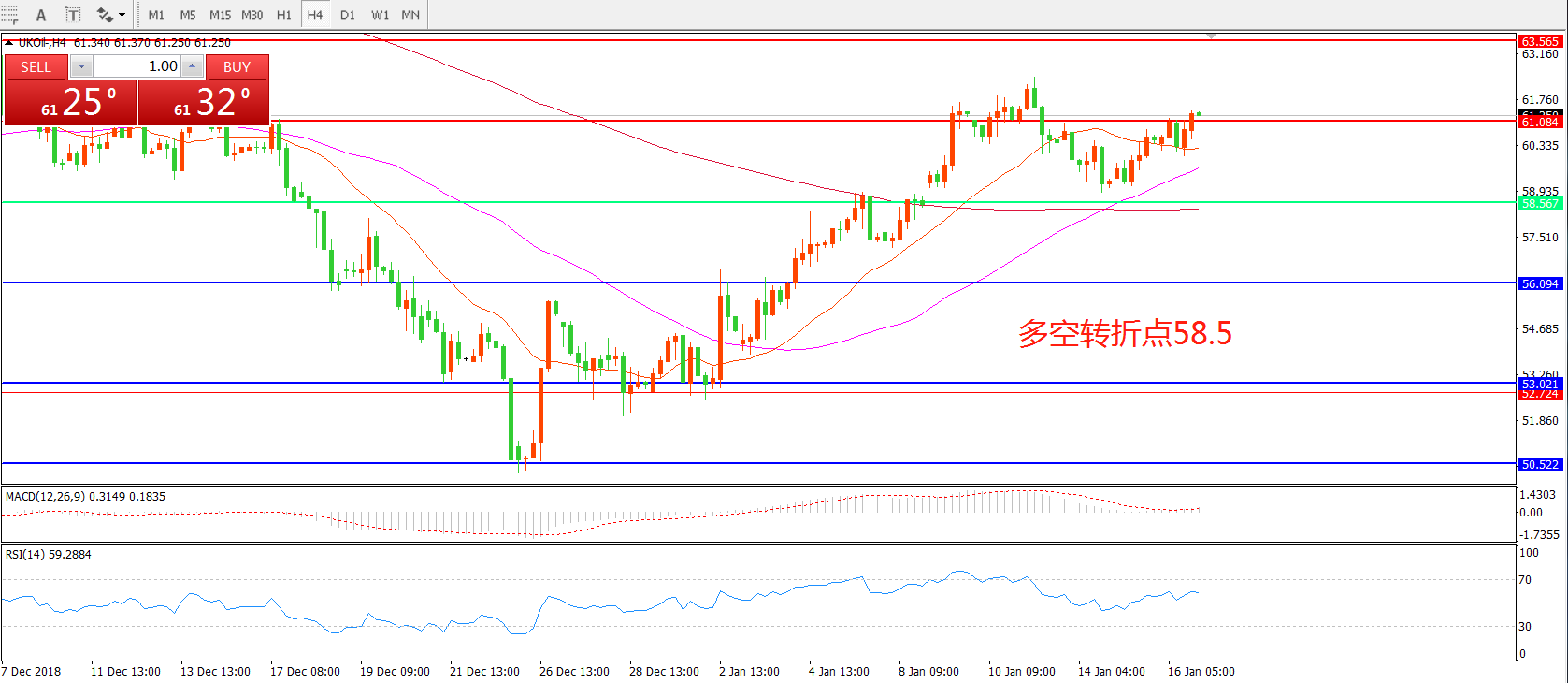 交易策略:在58.50之上看涨,目标61.00 63.50