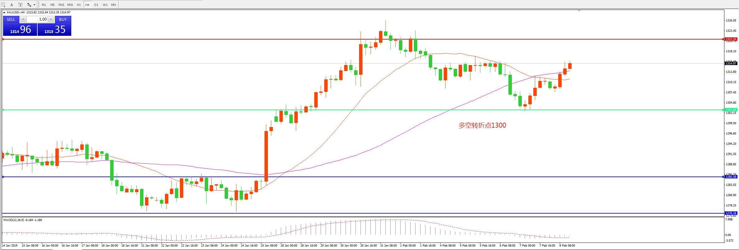 交易策略:在1300.00之上看涨,目标1320.00  1345.00