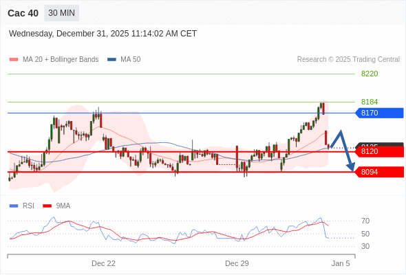 在 8170 之下,看跌,目标价位为 8120 ,然后为 8094 。