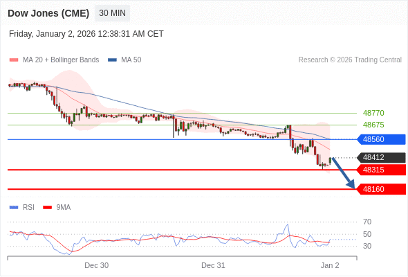在 48560 之下,看跌,目标价位为 48315 ,然后为 48160 。