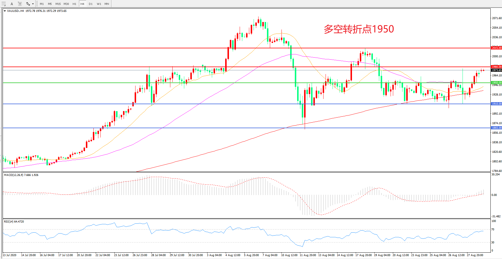 现货黄金XAU/USD 4小时图