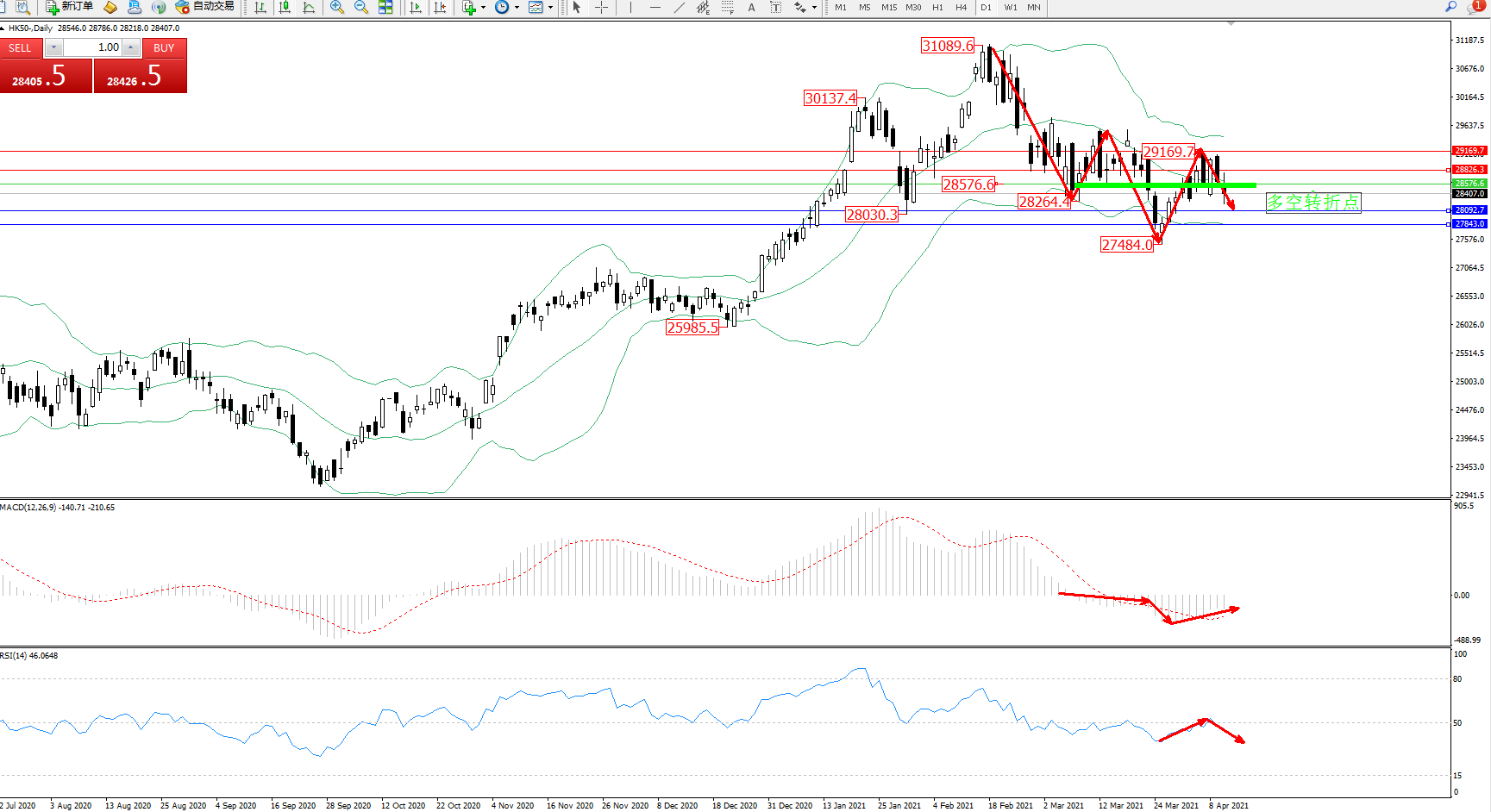 恒指HK50 ——日K线图显示: