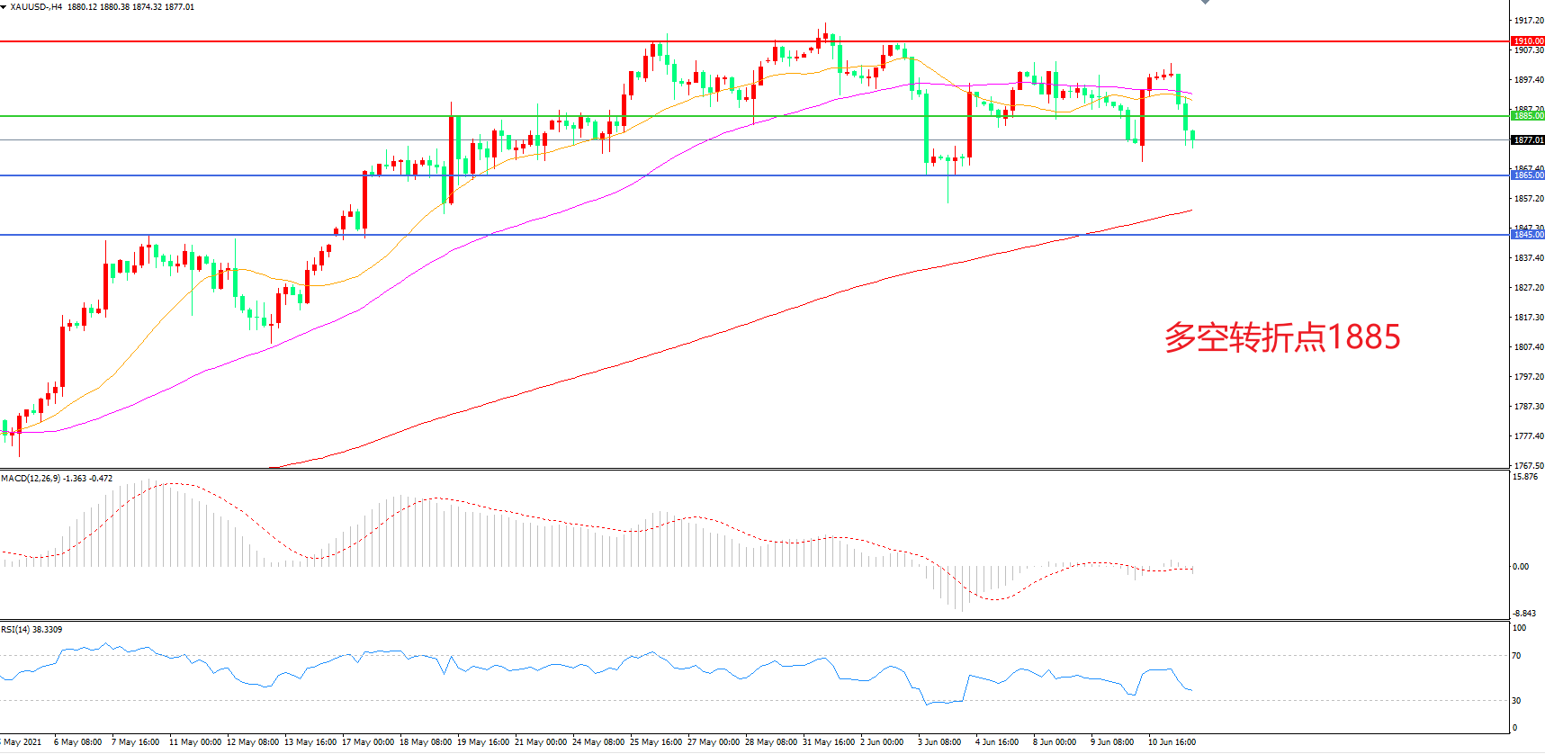 交易策略:在1885.00之上看涨,目标1910.00 1935.00
