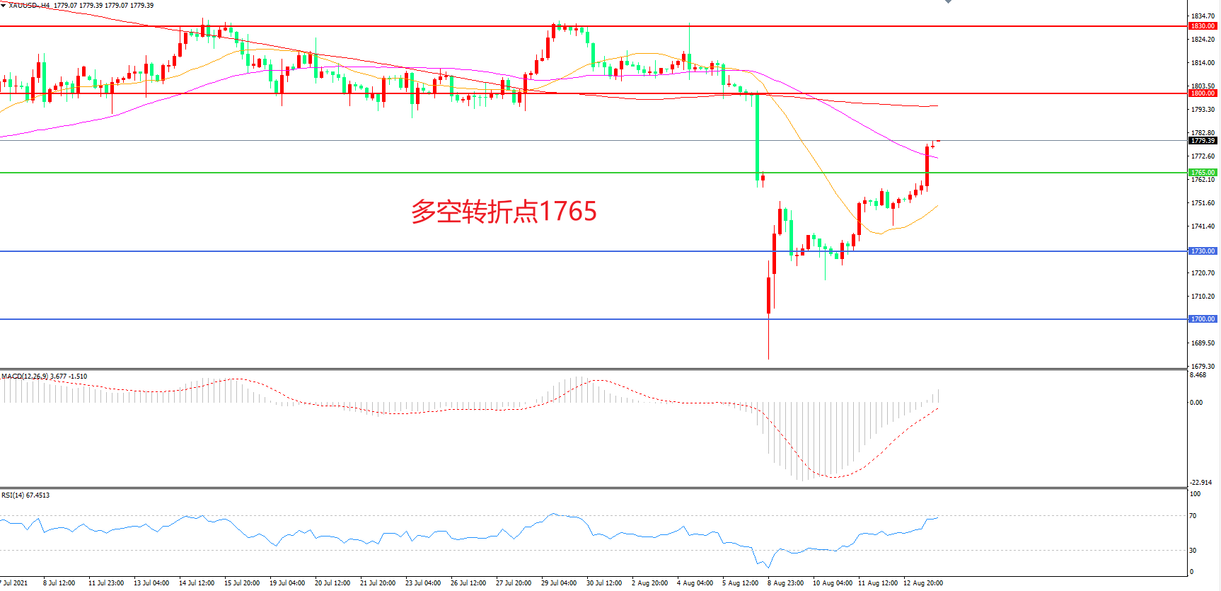交易策略: 在1765.00之上看涨,目标1800.00 1830.00