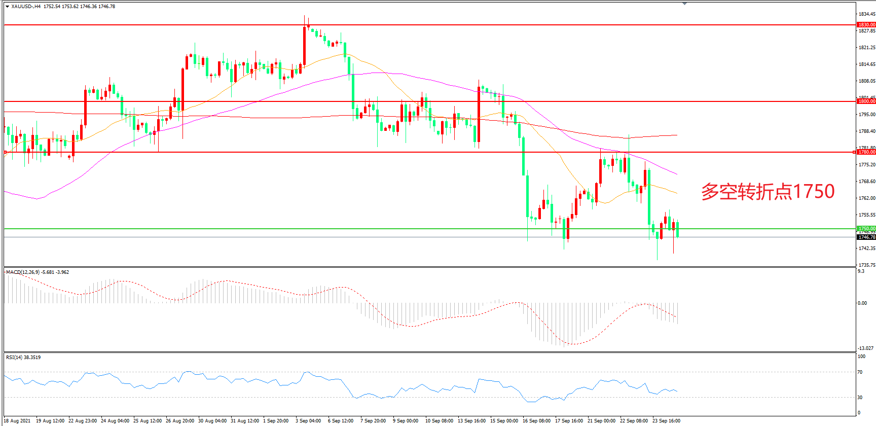 多空转折点:1750.00
