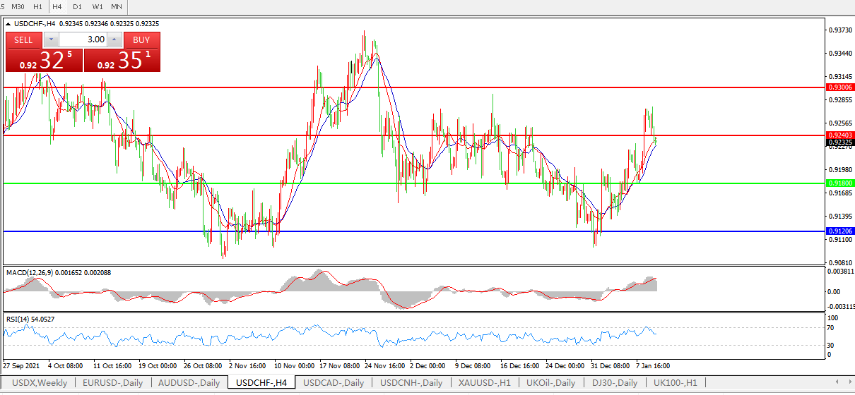 美元兑瑞郎USDCHF 4小时图: