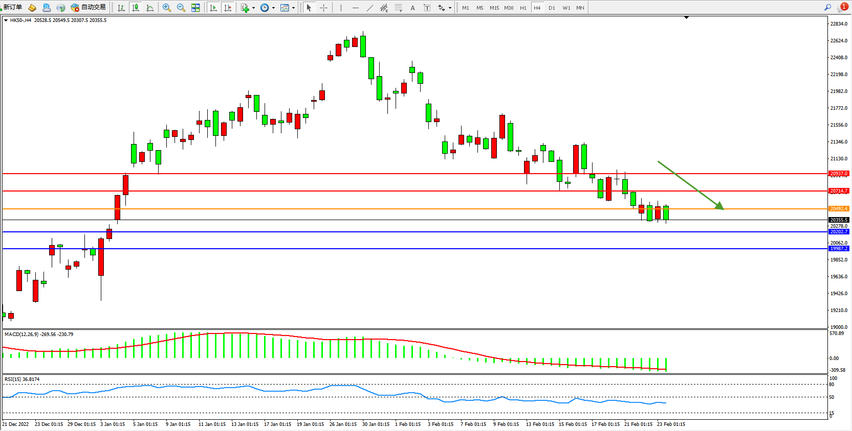 恒指HK50 4小时图